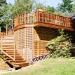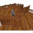 Site makes photography of project very difficult, but it came out exactly as planned. Rear yard slopes down quickly so that the deck is approximately 16 feet high above grade. Deck was constructed as a detached structure, with no attachment to garage or house foundation. Under deck hides pool pump, heater and other equipment.